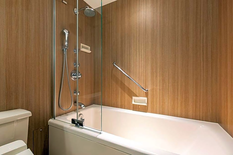 Located on an upper floor, this nonsmoking spacious room features panoramic city views of Nagoya, a stylish decor inspired by the history of Nagoya, a spacious bathroom equipped with a shower booth, Japanese-style bathtub, toilet and sink. Guests can sleep in a comfortable Hilton Serenity bed.